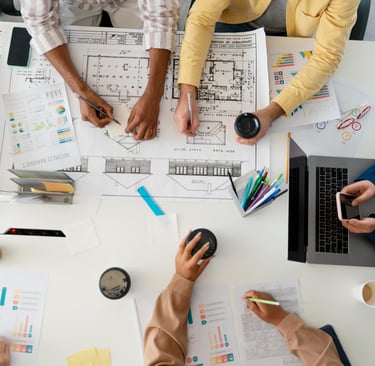 •Execução: realização da obra ou intervenção, com gestão ativa de equipes, fornecedores e prazos.